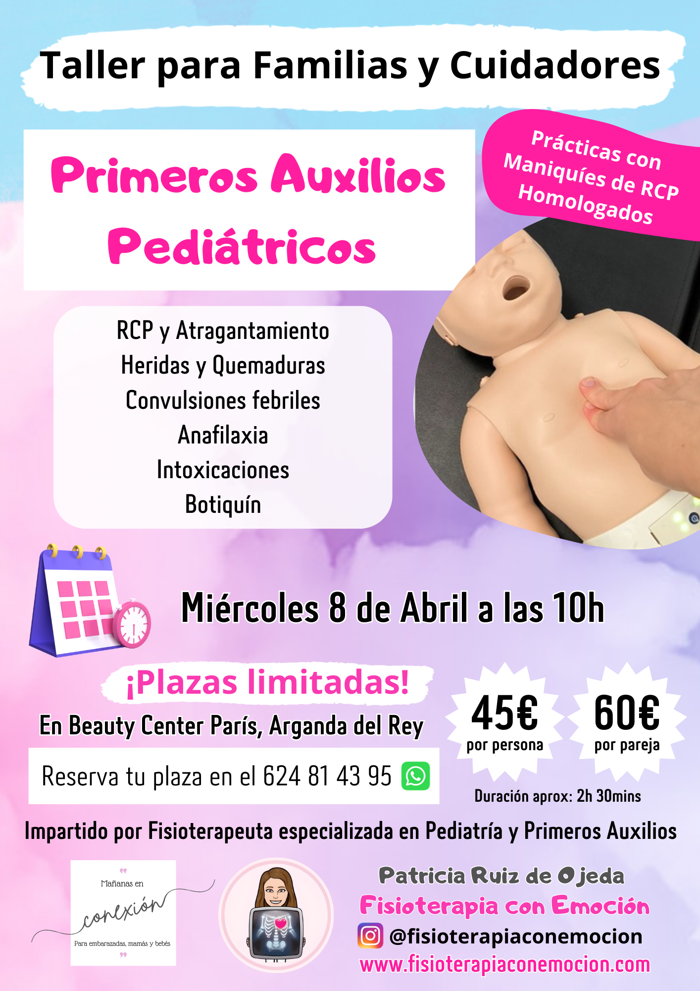 En nuestro Taller Teórico-Práctico impartido por fisioterapeuta especializada en pediatría y primeros auxilios, aprenderás a reaccionar correctamente en situaciones críticas.